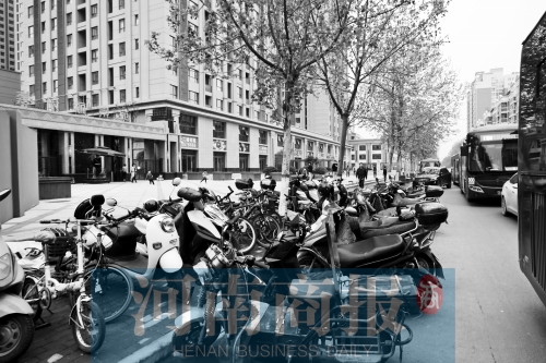 家住鄭州經三路與廣電南路交叉口附近嘉辰麗景苑小區的李先生一直把電動車停放在小區大門外的人行道上。原因是小區非機動車停放點兒沒建好。而停放點建成后,物業要收費。李先生等業主因此事與物業產生了分歧。