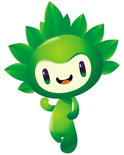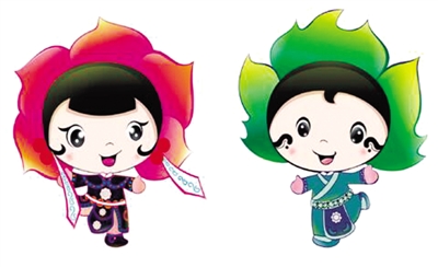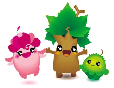 造型以綠色為主色調,園藝氣息濃厚,頭頂不同的花草造型,體現園藝豐富的藝術形態,手拉手相伴而走,體現自然與人類和諧共生的發展理念。身體的圖案是中國青銅器花紋,凸現與中華文明的淵源。