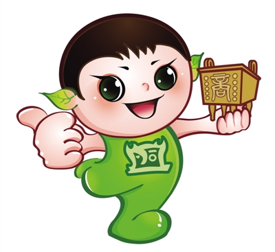 “商寶”左手托著象征古商都鄭州的商鼎,右手做出了河南人表示贊許、鼓勵、很棒、很“中”的手勢,歡呼跳躍著迎接八方賓朋。