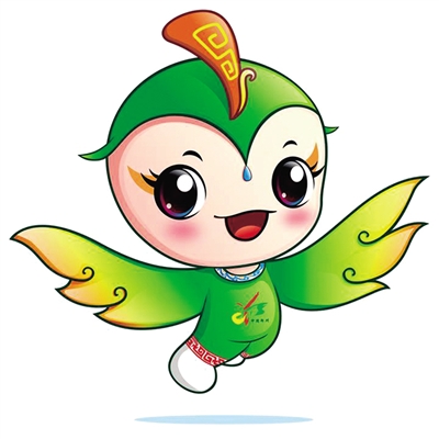 吉祥物色彩明亮活潑,鳥兒起步飛翔,使人心情舒朗。整體造型積極向上,富有親和力和感染力,簡潔大方,且易于后期開發和制作。