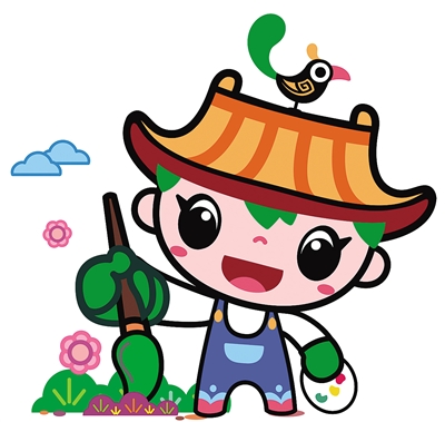 吉祥物“園寶”整體形象是一位朝氣蓬勃的小園丁,造型以傳統元素融匯時尚風格,集建筑、山水、植物、動物、文化藝術等園林要素于一身;頭頂的帽子形似中式傳統建筑屋頂,象征中國古典園林建筑,代表“園”;蔥郁的頭發和雙手,胸部、腿部圖案、色彩等,象征山水花木,代表“林”;身體五彩繽紛,臉部笑容明媚親和,右手豎起點贊的大拇指;左手執新綠萌發的葉芽,象征園林工作者辛勤耕耘,讓華夏大地永葆綠水青山。