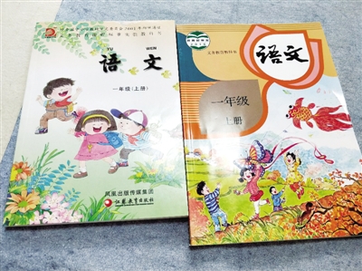 在金水區文化路二小教導主任趙健娜的辦公桌上擺放著兩本語文教材,一本是江蘇教育出版社出版的小學語文一年級上冊教材(簡稱“蘇教版”),一本是教育部審定、由人民教育出版社出版的小學語文一年級上冊教材(簡稱“部編本”)。