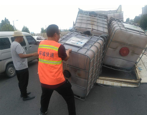 27日下午2時(shí)30分左右,中原區(qū)三官?gòu)R辦事處巡防隊(duì)員李玉章等人,巡邏到西三環(huán)與中原路交叉口附近,突然聽(tīng)到由北向南的高架橋上橋口處傳來(lái)劇烈的撞擊聲,跑過(guò)去一看,是一輛貨車撞在了限高桿上。隊(duì)員們發(fā)現(xiàn)貨車上拉的一些方形大桶掉落在上橋口處的車道里,導(dǎo)致其它車輛無(wú)法上橋,忙上前與環(huán)城快速管理處的工作人員一起,將這些大桶抬到路邊,清出一個(gè)車道,協(xié)助交警指揮車輛緩慢通過(guò)。