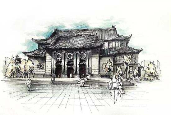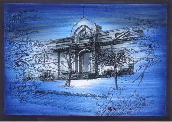 簡(jiǎn)單勾勒,沒(méi)有濃墨重彩,一如大禮堂古樸典雅的模樣。大禮堂前人來(lái)人往,四季更替,她靜穆佇立,深情地望著每一位腳步匆匆的學(xué)子。