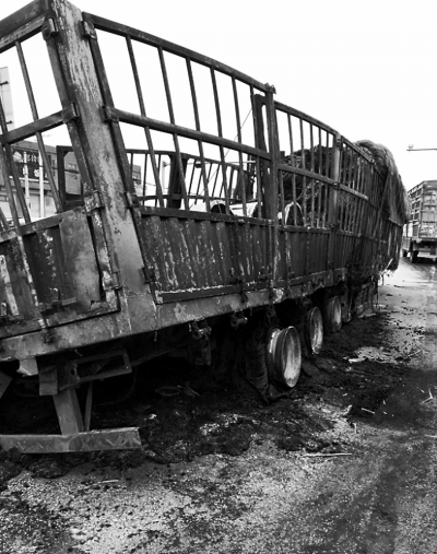大貨車的車身被燒毀武陟縣交通運輸局執法所供圖