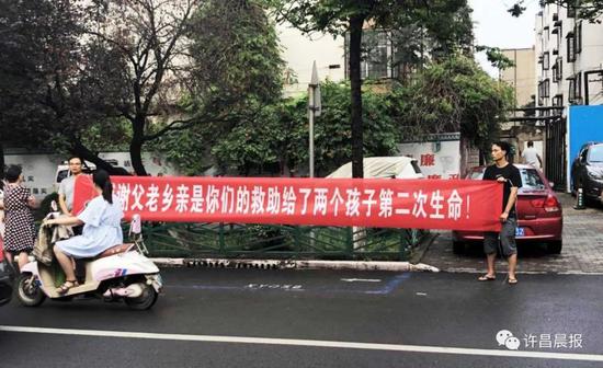 為孩子發起水滴籌捐款的愛心網友“只若初見”:下班時路過這里,看到獲救孩子的家人拉橫幅感謝大家:原本想和孩子的爸爸說句話,想了一下,還是默默地祝福。