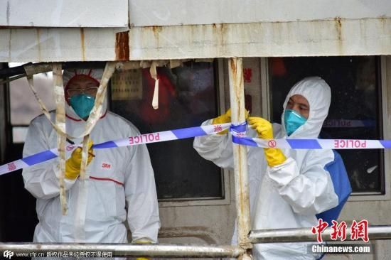 2015年6月8日,湖北荊州,工作人員對“東方之星”輪逐層逐艙進行最后的排查清理。14時10分,驗收通過后長江公安警方拉上了警戒線,這標志著“東方之星”輪現場排查清理工作全部完成。圖片來源:CFP視覺中國