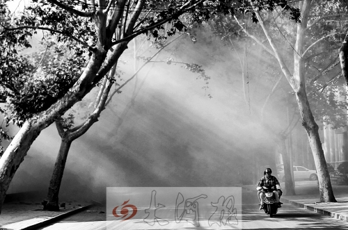 鄭州空氣讓小伙伴們又驚又羞,中國城市污染排行榜顯示,昨日鄭州空氣質量指數為192,登上榜首。而根據鄭州市城區空氣質量信息發布系統,昨日17時,鄭州市區內9個監測點位,有3個重度污染,首要污染物為PM2.5。范相閣說,這兩天空氣污染加重,主要是風力較大引起的揚塵。經監測,昨日市區外風力超過6級。(記者 朱琨 文 白周峰 攝影)