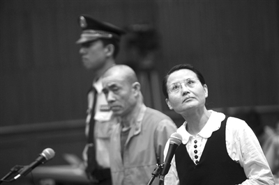 2011年5月12日,季羨林舊居失竊案開庭,被告人王如被帶到法庭門口時提出抗議,認為身著號服是對自己的侮辱,堅持要脫掉號服。獲得法庭準許后,她換上黑白相間的便裝受審。資料圖片/新京報記者王貴彬
