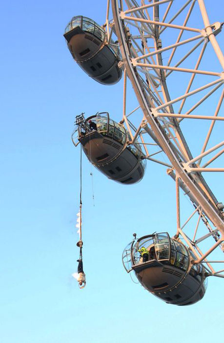 喜愛魔術(shù)的人一定不會(huì)對(duì)逃生術(shù)感到陌生。然而,在幾十米的高空表演玩命逃生術(shù)的恐怕并不多見。據(jù)英國《每日郵報(bào)》3月5日報(bào)道,“倫敦眼”摩天輪上5日就上演了一幕玩命逃生術(shù):表演者將自己倒掛在摩天輪上,僅用了幾分鐘就擺脫了燃燒的繩子成功逃生。