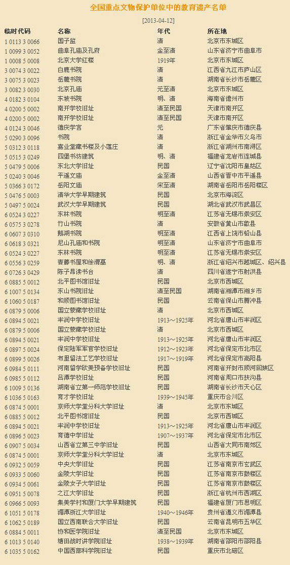 我國作為歷史悠久的文明古國,教育的傳統源遠流長,春秋私學即興;此后官學、私學交織發展,在歷史上形成“學校如林、庠序盈門”的景象,給后世留下了極為豐富的教育遺產。僅在國務院批準的全國重點文物保護單位當中,就有 “國子監”“孔廟”“白鹿書院”“岳麓書院”“北京大學紅樓”等相關教育遺產六十余處。它們不僅具有文物建筑本身的歷史、科學、美術、文化等各方面的價值,而且承載、見證了中華民族優秀的文化教育傳統,促進了各個時代的精神文化建設。因此,提出并深入研究教育的遺產,不僅有利于豐富歷史文化遺產的內容,而且有利于進一步細分文化遺產類型、豐富世界文化遺產的多樣性。