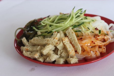 水席的得名其實也好理解,就是“湯湯水水”,每道菜肴多多少少都有些湯水,即便是模樣類似梅菜扣肉的腐乳肉,肉片下面也潤著些紅腐乳湯的水水潤潤。原以為水席不過是招攬外地過客的美食窗口,卻不想洛陽老城西大街附近的水席一家挨一家,一時間“水漫金山”。一些水席老店在洛陽有著好口碑,于是堂而皇之找去,卻不想11點出頭的光景早已客滿,老板娘的話客氣中帶著自信,“您明天早點來。”