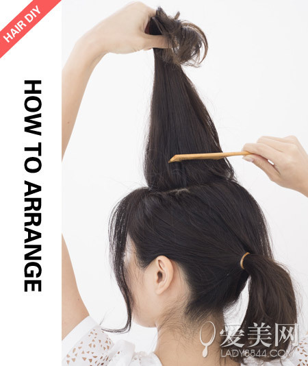 step3:用發飾固定后將頭頂的頭發拉扯出蓬松感。