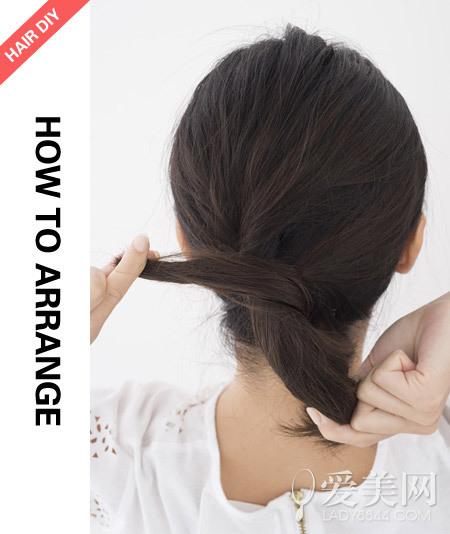 step5:將發辮纏繞在馬尾上。