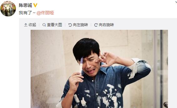 今日(10月21日)上午,陳思誠更新微博,曬出一張手拿驗孕棒的照片,并艾特佟麗婭稱“我有了”,畫面十分搞笑。