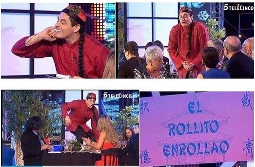 根據(jù)西班牙華文媒體《歐浪網(wǎng)》報(bào)道,該電視臺(tái)在跨年節(jié)目《平安之夜》(La Noche en Paz)中,其中一段短劇描述當(dāng)?shù)匾幻鸦槟凶樱谥袊?guó)餐廳私會(huì)新女友,巧遇到妻子和岳父、岳母,只好多次換裝周旋于雙方之間,但最后還是被揭穿。