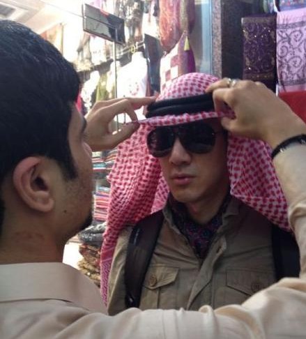 近日,王力宏與家人一起到非洲旅游,已習慣每天用微博向粉絲問候的他上傳了一張自己正在戴上阿拉伯男子頭巾的照片,還用自導自演的《戀愛通告》中的臺詞稱:“我是姆哈姆德,你可以叫我阿德!”加上墨鏡遮臉,不少粉絲評價的確很像當地人。