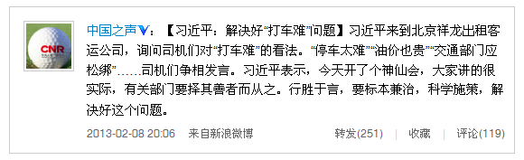 【習近平:解決好“打車難”問題】習近平來到北京祥龍出租客運公司,詢問司機們對“打車難”的看法。“停車太難”“油價也貴”“交通部門應松綁”……司機們爭相發言。習近平表示,今天開了個神仙會,大家講的很實際,有關部門要擇其善者而從之。行勝于言,要標本兼治,科學施策,解決好這個問題。