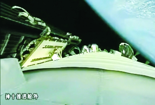 神舟十號飛船發(fā)射升空后,推進(jìn)艙外的視頻截圖。新華社發(fā)