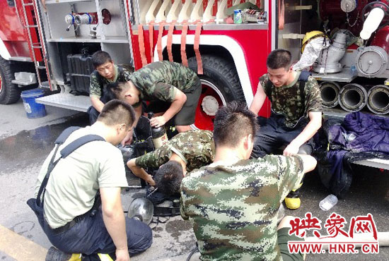 由于天氣炎熱,加上接近火災現場、救援時間長,多名消防戰士虛脫暈倒,現場注射和飲用生理鹽水,附近商戶也為消防戰士送來飲用水。
