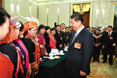 昨日,習近平參加廣西團審議,代表黨中央、國務院,向廣大婦女代表、婦女委員及全國各界婦女同胞,致以誠摯的節日問候。 新華社記者 蘭紅光 攝