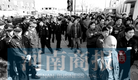4月5日下午3時20分許,鄭州市長江路與工人路交叉口東、西、北三個方向的路口處,站著近百人,將此處堵得嚴嚴實實,過往車輛只能繞行。