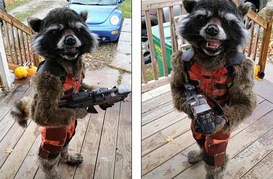 據悉,這件套裝仿照電影《銀河護衛隊》里的漫畫角色“火箭浣熊”制作而成。該電影的導演詹姆斯·古恩(James Gunn)在網上看到后贊譽有加,稱“又一件超酷的萬圣節服飾,大家真的是棒極了!”