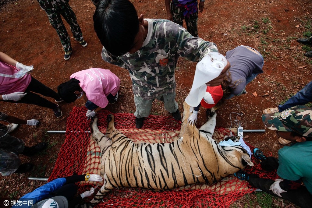 30日,泰國警方和野生動物保護部門的官員在這所佛寺里展開行動,將所有存活的老虎轉移至別處安置。湯姆·泰勒來自野生動物之友基金會,他在現場親眼目睹了老虎幼崽尸體被發現的一幕。據泰勒稱,冷凍庫里還有其他動物的尸體,而執法人員在佛寺里一共找到了137只活老虎,其中40只已被沒收。