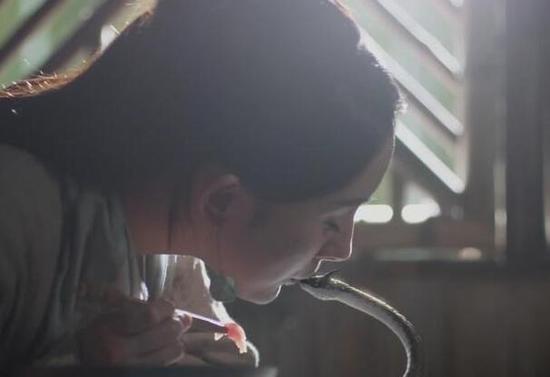 2月5日,趙又廷曬出楊冪閉眼深情吻蛇的劇照,直呼:“此吻很危險,模仿須謹慎。”