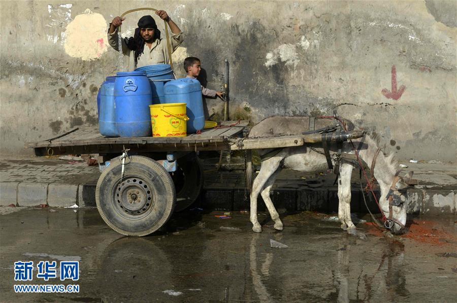 4月19日,在巴基斯坦拉合爾,一名男子從路邊的水龍頭里取水。 巴基斯坦受高溫侵襲,許多地區氣溫超過45攝氏度。