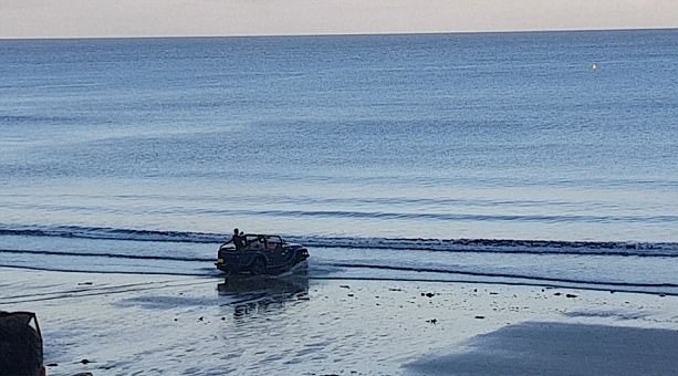 據(jù)《每日郵報》7月27日報道,近日,在英國康沃爾郡一間名為“The Hidden Hut”的海邊餐廳里,數(shù)百名正在享用大餐的顧客目睹了一輛吉普車在海上化身成快艇高速行駛的全過程。” 據(jù)其他目擊者反映,當(dāng)吉普車在海面上像快艇一樣高速行駛的時候,全場驚呆了,接著爆發(fā)出歡呼聲和掌聲。