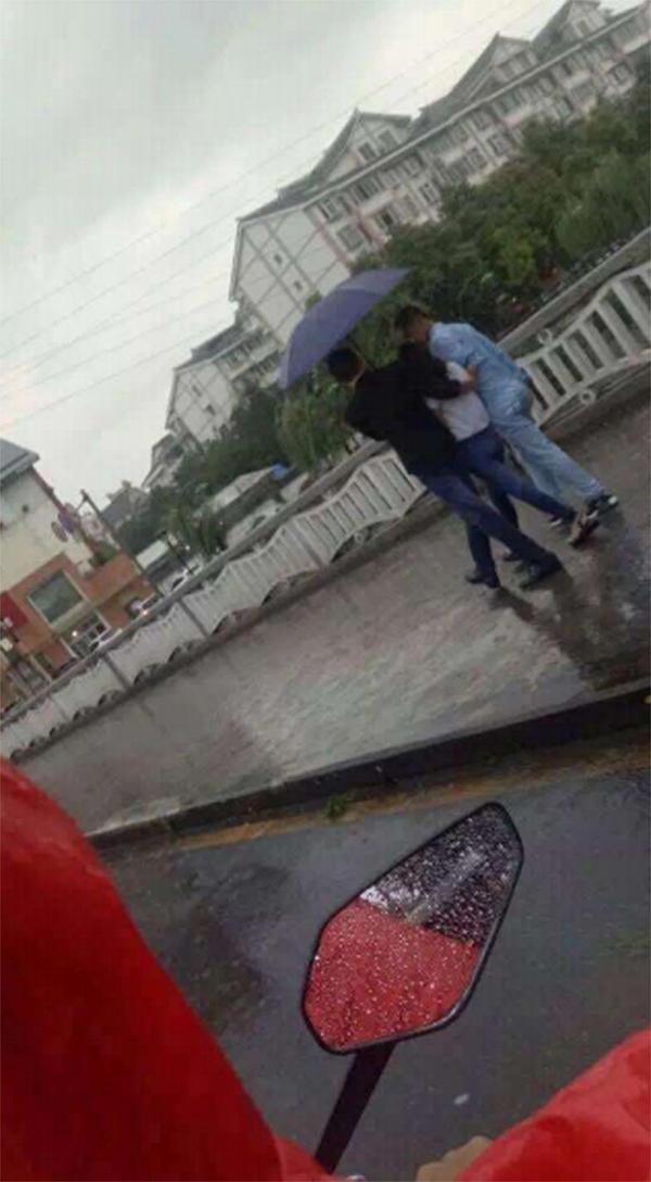 當(dāng)日下午6時許,小唐正騎著電動車前往商家取餐,途經(jīng)都江堰市一環(huán)路柏條河橋路段時,橋上人行道的兩名可疑男子引起了他的注意。“當(dāng)時,有兩個男的撐著傘,兩人之間還架著一個年輕的女娃娃?!拔耶?dāng)時已經(jīng)過他們了,但聽到一個男子說‘你不聽話就弄死你’,我一下就覺得不對勁了?!毙√平榻B,隨后他放慢了車速,來到了三人的身后側(cè)方位置,慢慢地跟隨在后方,同時掏出手機,拍下了三人的照片?!爱?dāng)時想這個女娃娃肯定是遭到了綁架,拍照可以作為證據(jù)。”