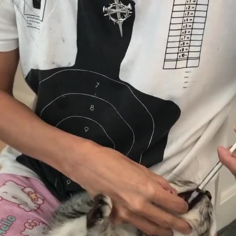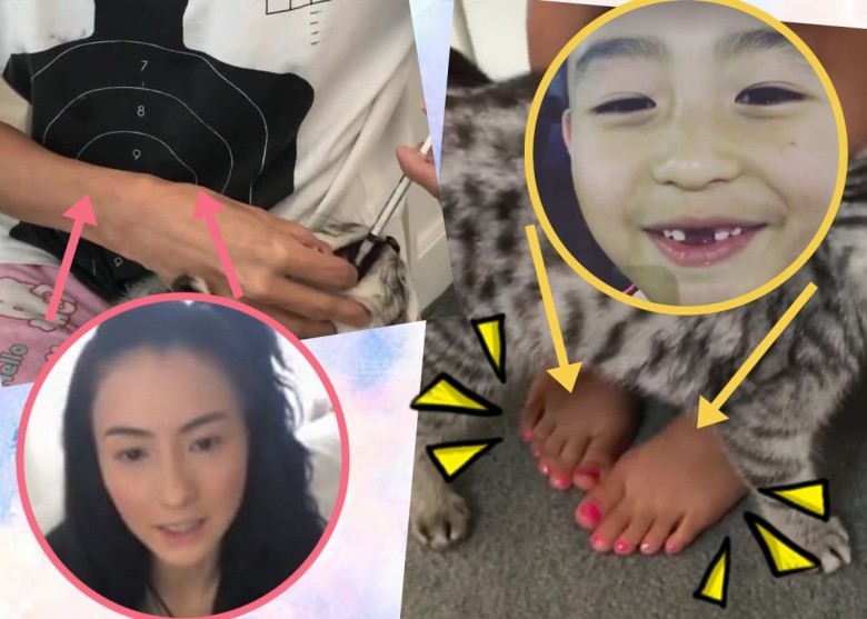 張柏芝給貓喂藥 發現小Q涂粉紅腳指甲油