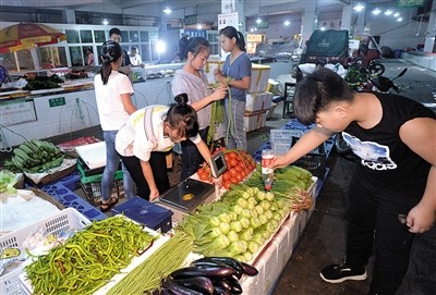 凌晨3點半,孩子們到北山市場批發蔬菜,大家忙著討價還價。
