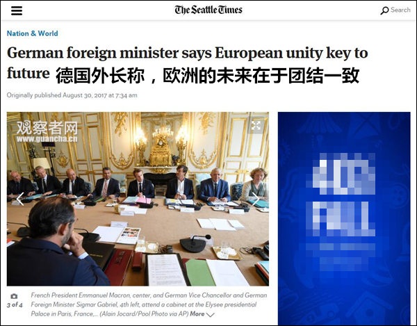 據美國《西雅圖時報》30日報道,德國外長加布里爾在巴黎出席一次駐外使節會議上,呼吁歐洲應當團結一致,制定出統一的對華戰略,也敦促中國不要試圖分化歐洲,而應遵守“一個歐洲”原則。