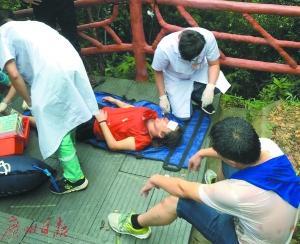 醫護人員在半山處對傷者進行救治。廣州日報 圖