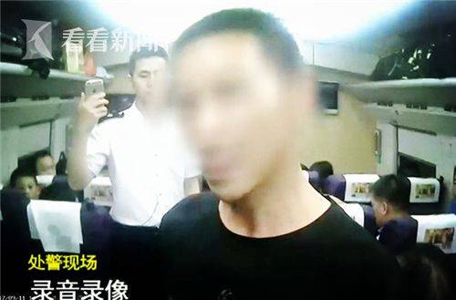 南京鐵路公安處乘警支隊民警蔣偉:“嫌疑人多次推搡我們的列車工作人員,甚至揮拳過去打我們列車長,列車長因為挨了打,情緒比較失控,一度控制不住已經哭起來了。”