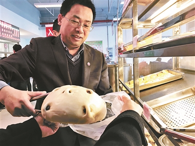 而當(dāng)初推出大饅頭的想法源于他和朋友在一次聊天中聊到了小時(shí)候過年才能吃到的大饅頭。他當(dāng)時(shí)就想,山東棗饅頭因?yàn)榭诟泻?,老少皆宜,要不就在食堂也推出這種饅頭,換換花樣讓更多的學(xué)生能因?yàn)榛臃聬凵铣浴笆程谩薄?/p>