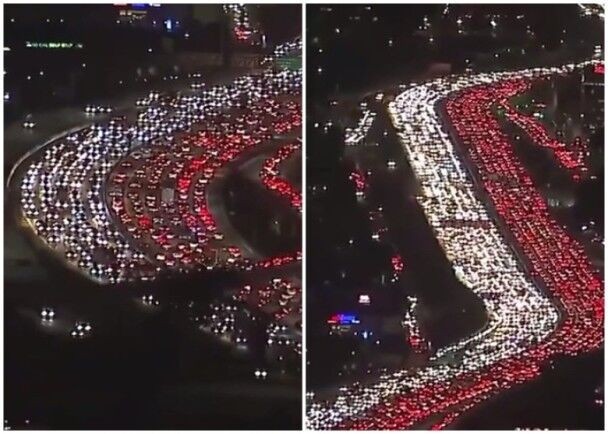 大批美國民眾在感恩節提早返回家鄉,計劃與家人迎接這個節日。但過多的人流導致交通嚴重堵塞,洛杉磯的公路更出現超長車龍,如河流般的紅白車燈更成為一道奇景。