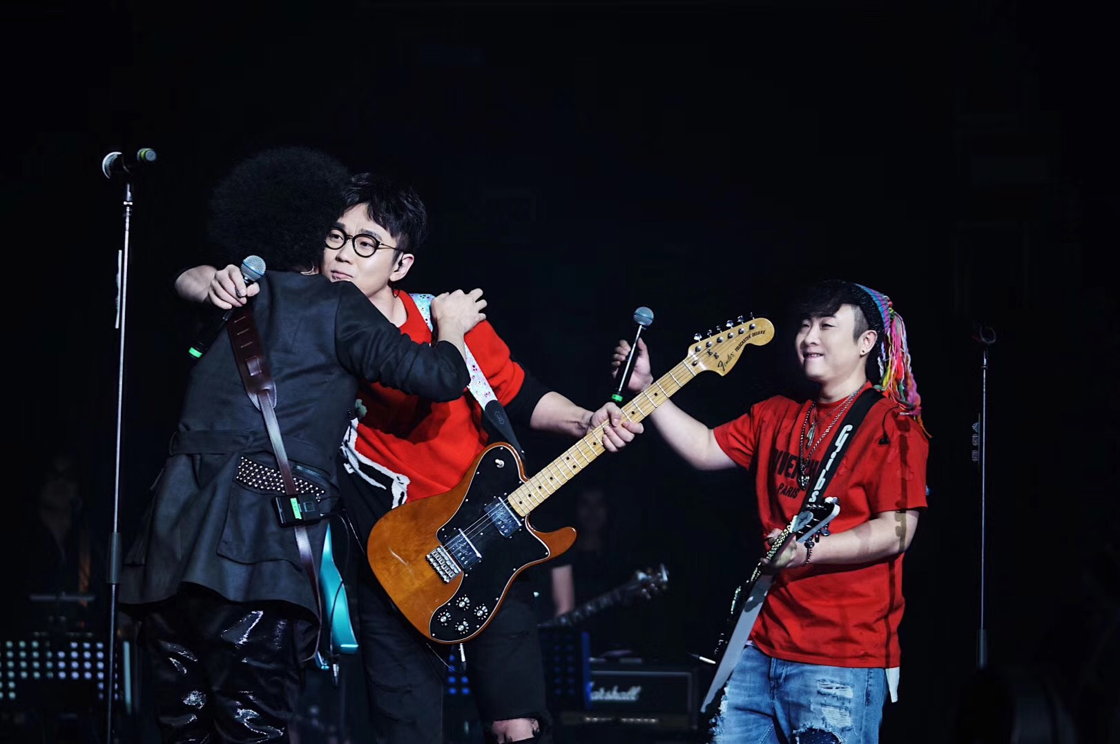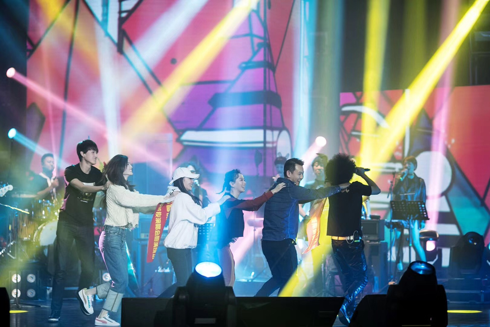 被稱為“票房吉祥物”的趙英俊,開演唱會怎能沒有好友?演唱會近半時,黃雅莉驚喜現身,和趙英俊合唱了最近大熱的新歌《女兒國》,男聲低沉,女聲婉轉,讓臺下觀眾也忍不住跟隨合唱。作為十幾年的好兄弟,薛之謙早早就確定會為瀟灑哥演唱會“加持”,二人合作的《演員》讓現場歌迷激動不已。而大鵬喬杉的登場掀起了另一波高潮,“整不整?”“整!”電影《縫紉機樂隊》臺詞響徹演唱會舞臺,讓人恍惚間仿佛看到縫紉機樂隊再現。唱到《大王叫我來巡山》,李小璐、何穗、黃雅莉等青春旅社結識的好友和《不凡的改變》節目組代表李響作為“巡山團”齊齊登臺,眾人大跳“巡山舞”,將演唱會氣氛推向高潮。