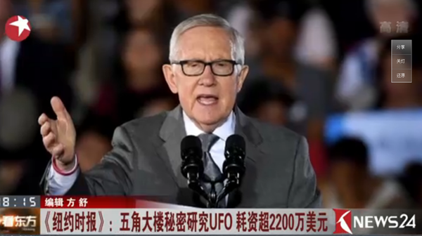 報道還稱,據埃利松多透露,自2012年國防部停止撥款后至今,他仍與海軍和中情局(CIA)官員合作調查UFO事件,但他今年10月遭部門內部反對,因此向國防部長馬蒂斯提出辭職以示抗議。