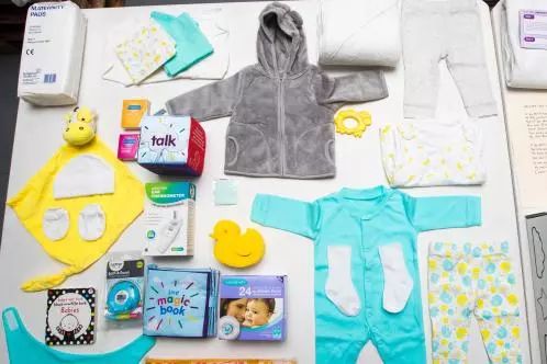 嬰兒箱里的嬰兒睡袋、背心、褲子、手套和帽子都是中國制造,甚至連圍嘴、浴巾、指甲銼和溫度計等一些物件也來自中國。盒子里只有毯子和毛巾是由歐洲制造的,產婦衛生巾來自英國諾丁漢郡,而一本精裝書由倫敦出版。