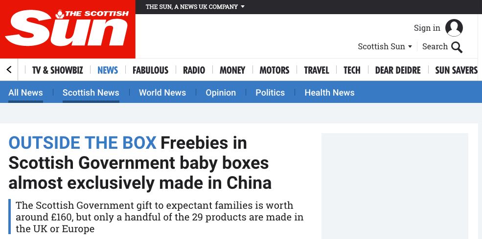 現在看來這個想法要被改變了!連英國蘇格蘭政府贈予新生兒家庭的禮物,大部分都來自中國制造。