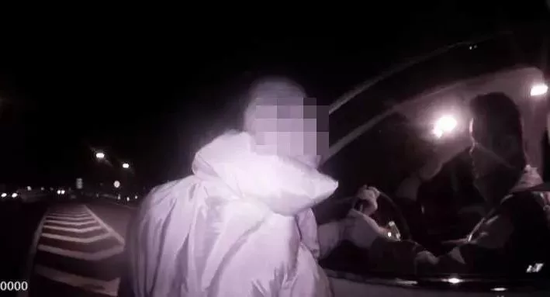 民警打算上車阻攔時,張某飛速跑來,從車窗內伸手拉住警車方向盤。