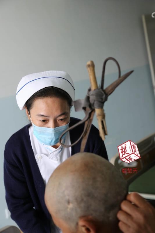 4月4日清晨,襄陽市樊城區太平店鎮57歲的農村婦女沈某,在采摘香椿嫩芽時,綁在竹桿上的剪刀因竹子腐朽不慎折斷,剪刀斜插入頭顱。經過及時搶救,目前脫離生命危險。