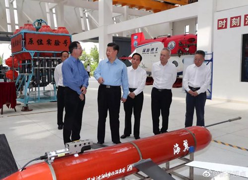12日下午,習(xí)近平總書記來到位于海南三亞的中國科學(xué)院深??茖W(xué)與工程研究所,仔細察看“海翼”號深?;铏C、“天涯”深淵著陸器等設(shè)備,并同“深海勇士”號載人潛水器設(shè)計師和深潛團隊親切交談。