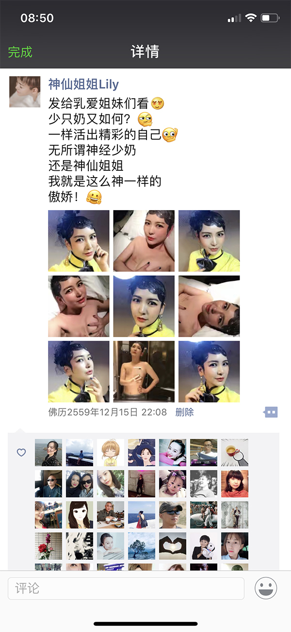 2016年12月,李琍在微信朋友圈發布的自拍照。