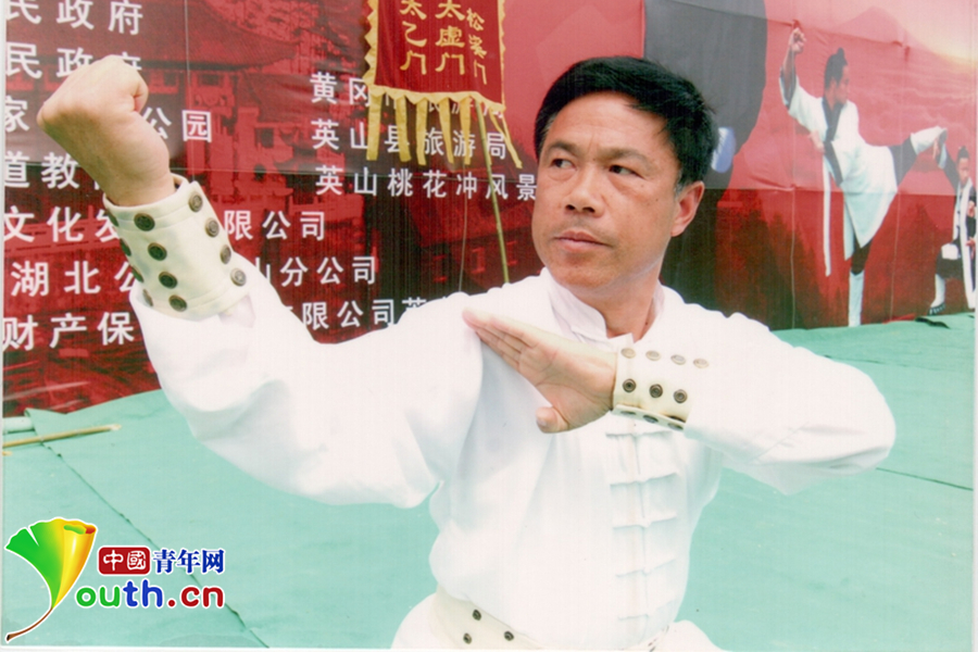 2007年5月在英山縣舉辦的第一屆“南武當杯”國際武術節上,岳家拳傳承人張業金現場表演獻技。