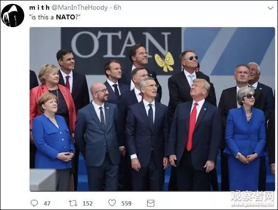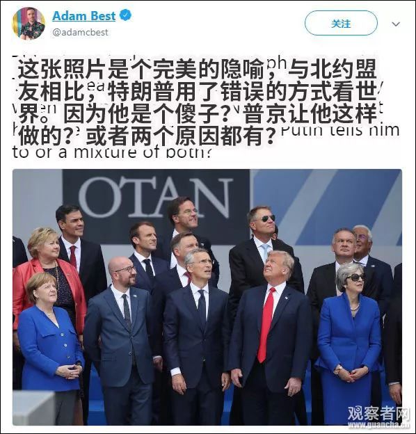 該照片目前已經被西方各大主流媒體使用,作為其報道北約峰會的頭圖,比如美國《新聞周刊》、《時代》等。