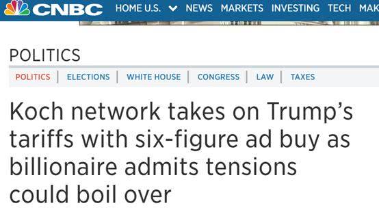 可隨著之后特朗普對中國等國發動貿易戰的行為,以及相關惡果的逐漸顯現,科赫家族的最新表態也與今年1月的言論形成了鮮明的對比。